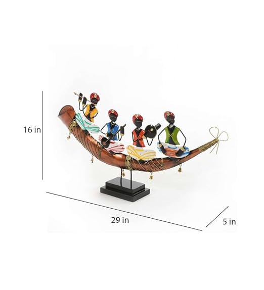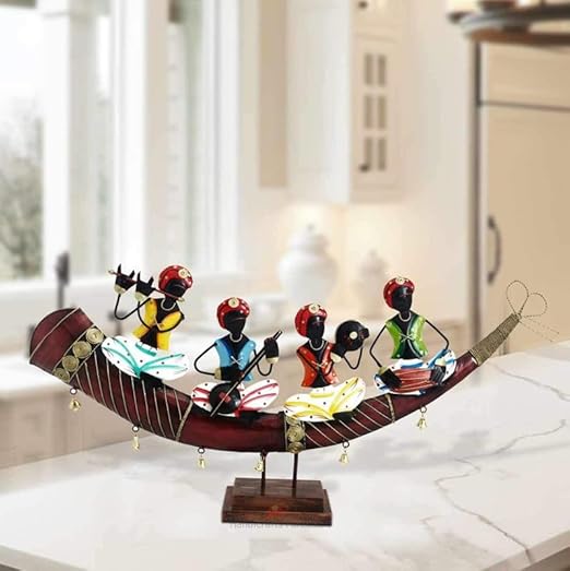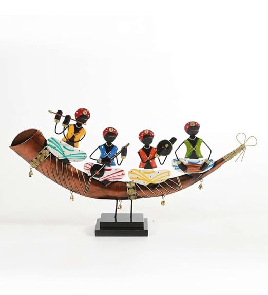 match any Indoor-theme. Bring western spirit to any room in your cabin or lodge. Dimension :30* 04*15 inches , Rajasthan Dance : A beautifully engraved Metal horn supports four tribal folks engrossed in a sequence of music and dance. The beautiful detailing on table decor adds to its ethnic appeal. Made from superior quality 100% cast Metal, you are sure to be mesmerized by it. Gifting Option : It is a statement piece, which is bound to emphasize the look of your home or surroundings. Gift it to someone who appreciates art, and this piece will become a beautiful remembrance. Depicts the Rajasthan form of dance and music in intricately hand worked Metal piece. This piece will accentuate your surroundings and makes for a great present.