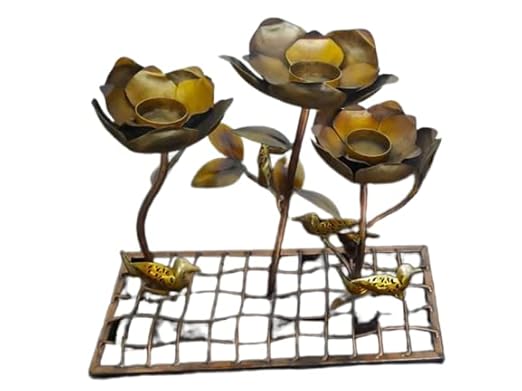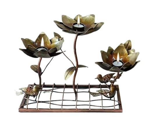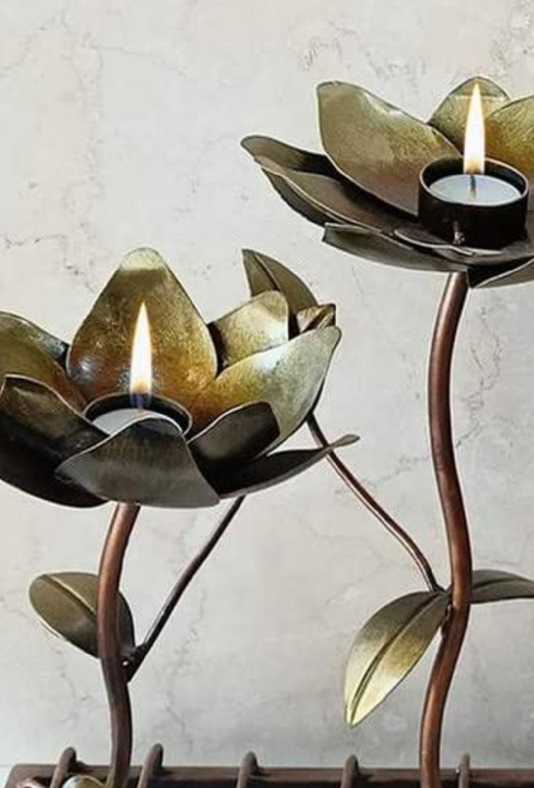Illuminate your space with elegance with this votive holder. The pedestal base is made of iron and features a lotus-shaped design. The glass holder is designed to house a candle, casting a warm glow in your space.