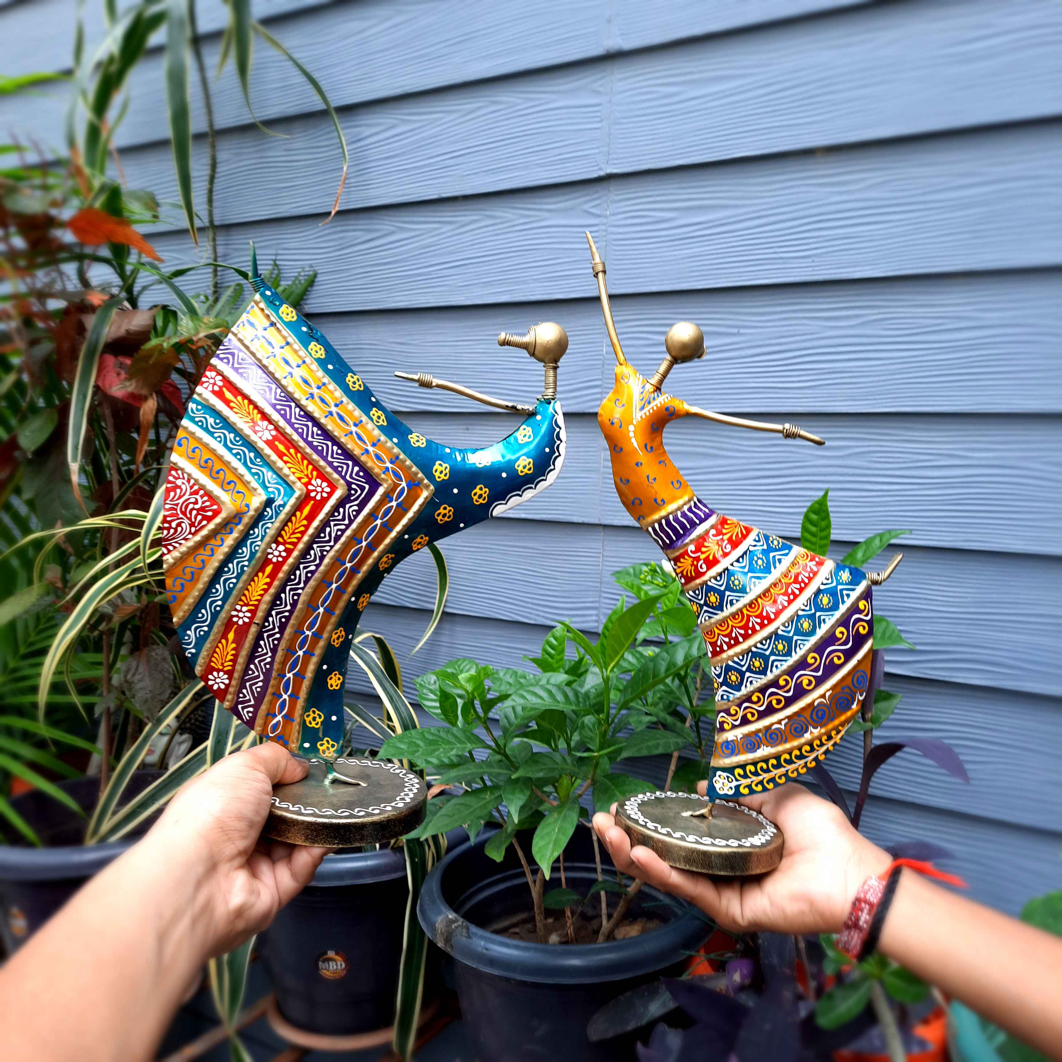Throw in a dash of colour to your usual home decor with these bright and colourful figurines of dancing girls. The minimalistic iron structure is in perfect contrast with the vibrancy of their attires. You can keep them together – or you can split them up and deck up two different places in your house with their presence. Either way, it adds a zest to the ambience of your house. This simple yet extremely artistic piece from Apkamart will add that much needed quirk to your home decor that you have been looking for. Place an order today for this beautiful piece, be it for yourself or as a gift for a friend.