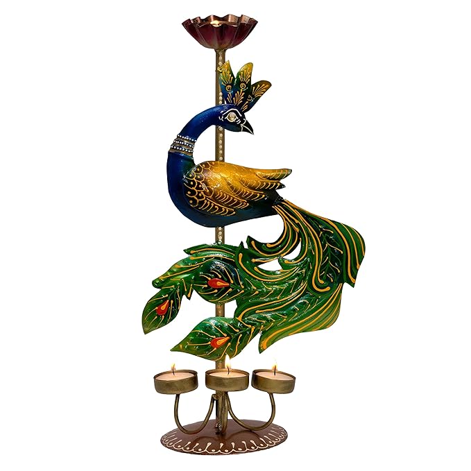 Elegant Home Decor: Enhance your living space with our metal peacock tealight showpiece, a perfect home decor item.