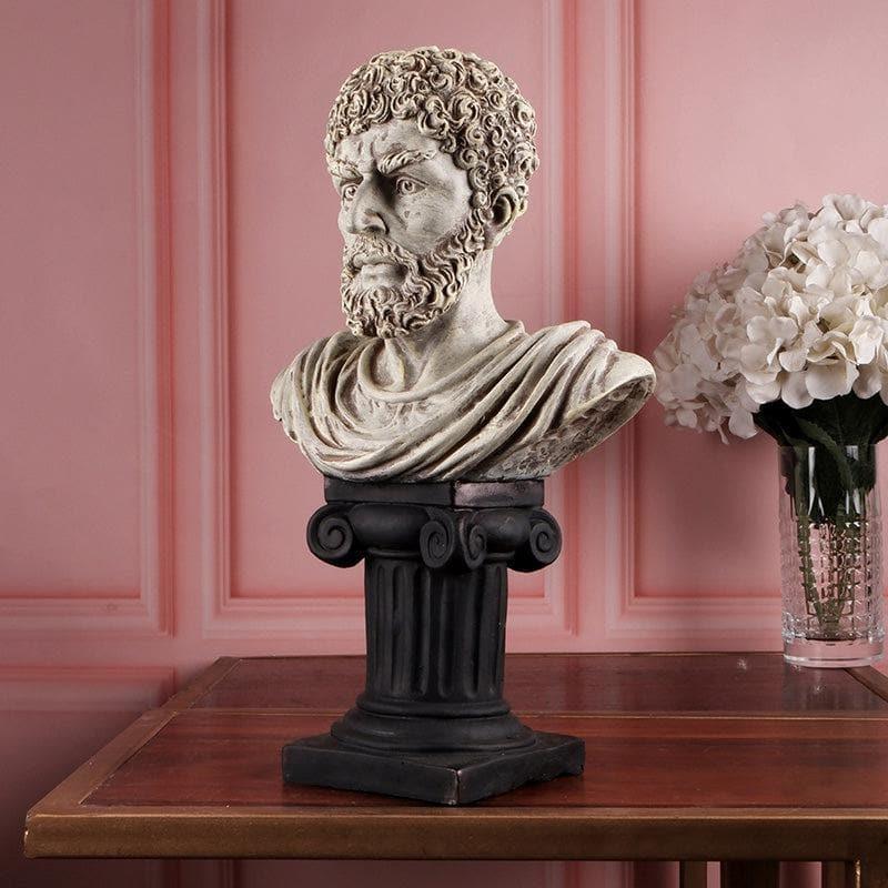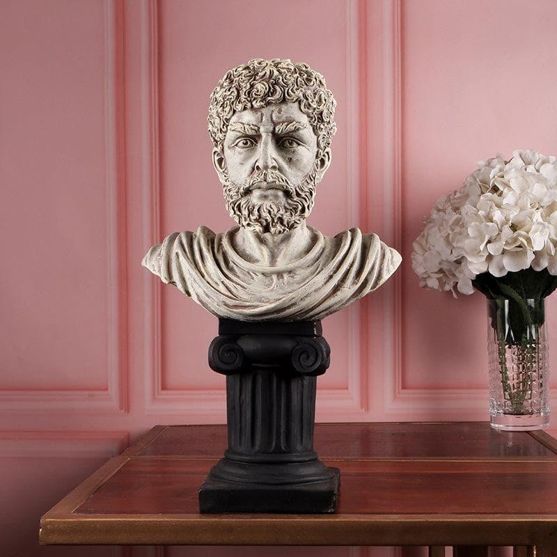 The original ancient Roman statue depicts Marcus Aurelius, a philosopher and statesman, in a Greek fashion with a beard and curly hair.
