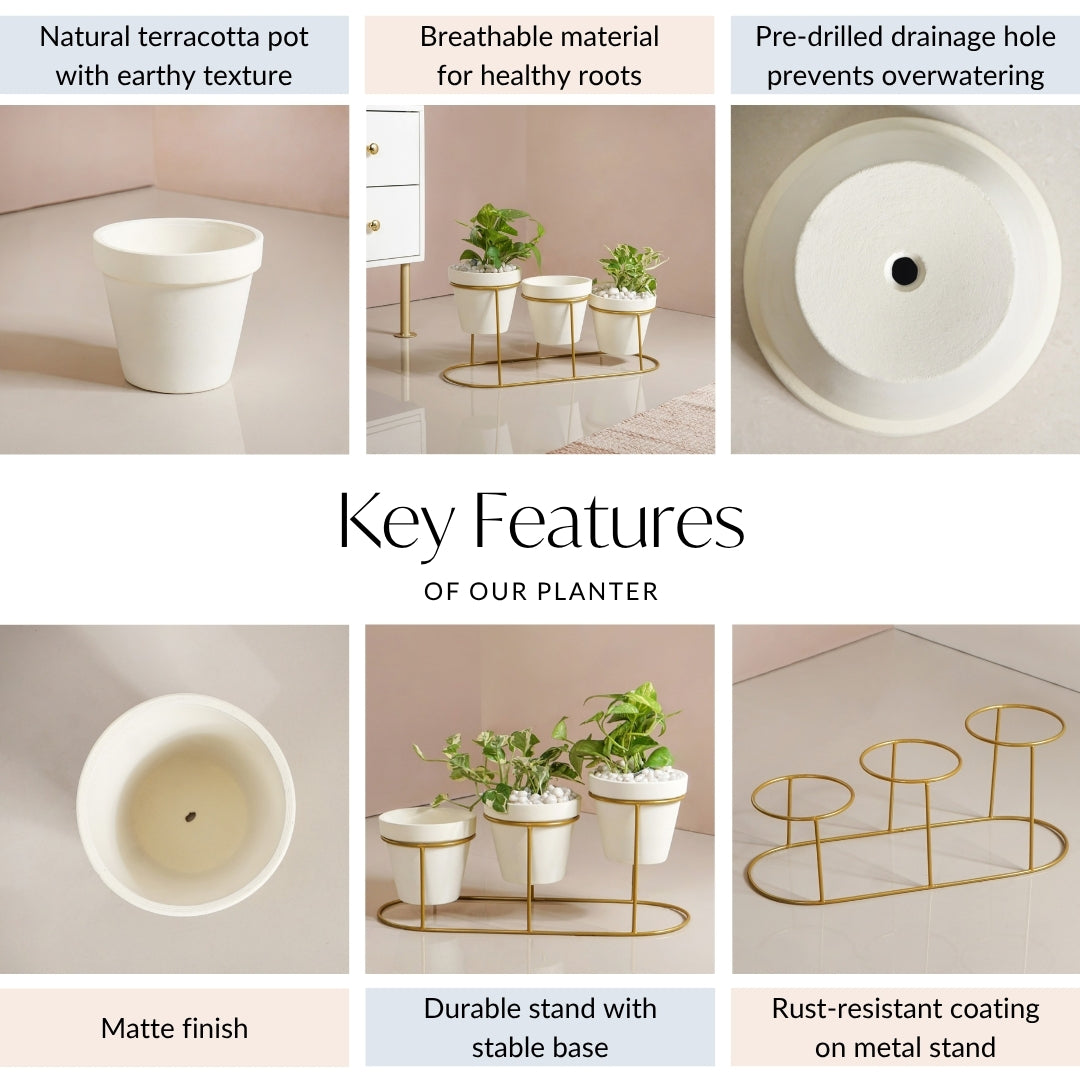 The simplistic yet modern design of the metal planters with the stand is exactly what you would need to enhance the charisma of your space. They come with a capacity to bear any kind of plant, whether succulents, herbs, or flowering plants that adjusts well with the environmental conditions around them. Combining classic with contemporary aesthetics, the metal planters with the stand are made up of durable material for stability and strength. May it be your kitchen, living room or office space, their smooth contours and a modern profile unite to render a fresh and tempting appearance to any setting